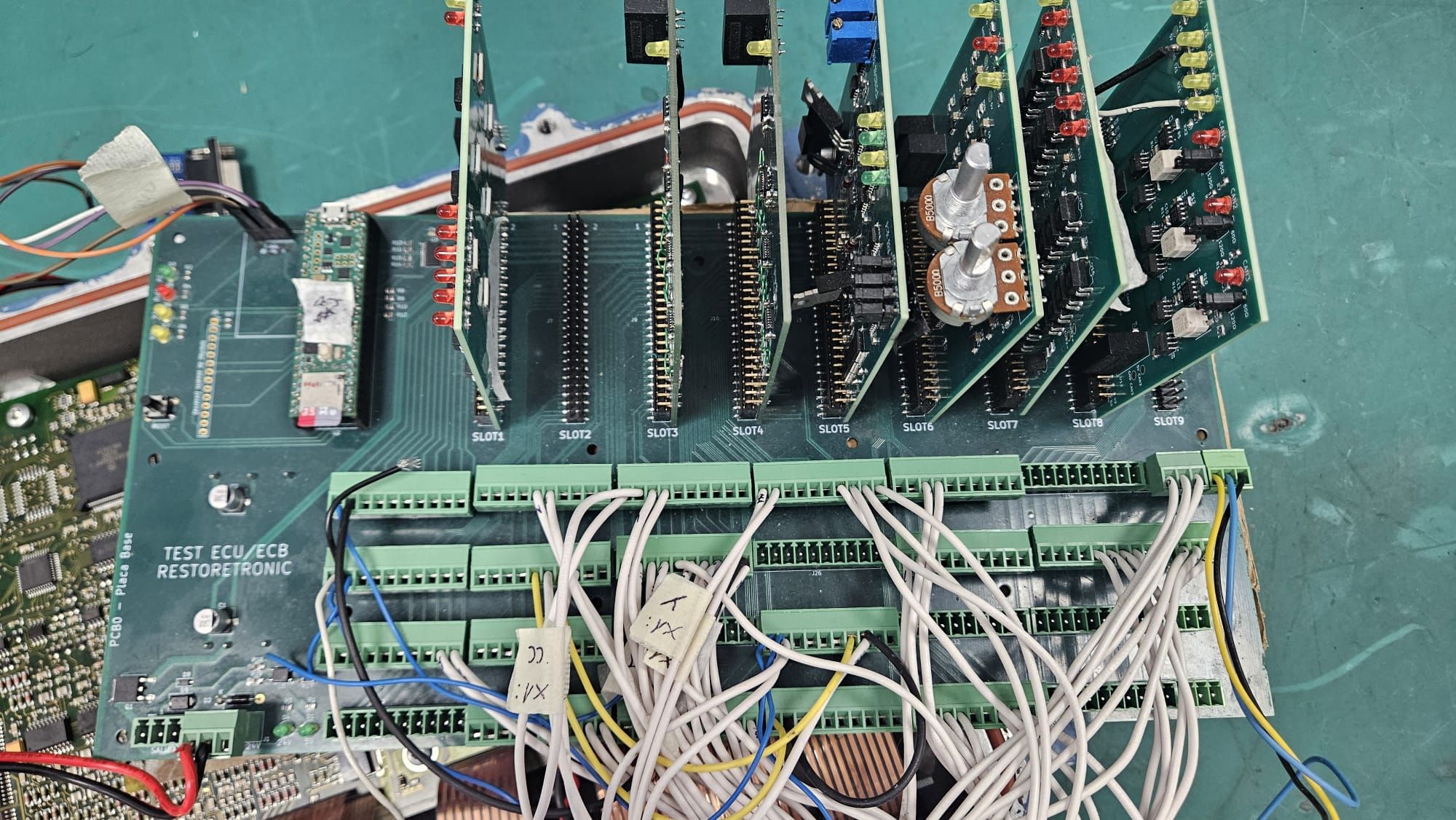 As this unit became obsolete, in 2024 we noticed an increase of repairs on these MDEC units, so we decided to improve our possibilities to repair them, going deeper in the simulation. We designed and developed this prototype to be able to connect on the ECU, not only on this model, it will be available for other models of MTU ECU´s. We are on last stage to finish it, now working on the software side. Each board connected on motherboard would be prepared to simulate different channels, sensors or conditions. The idea is that each of our engineers will have this unit on the bench to work on ECU repairs.
