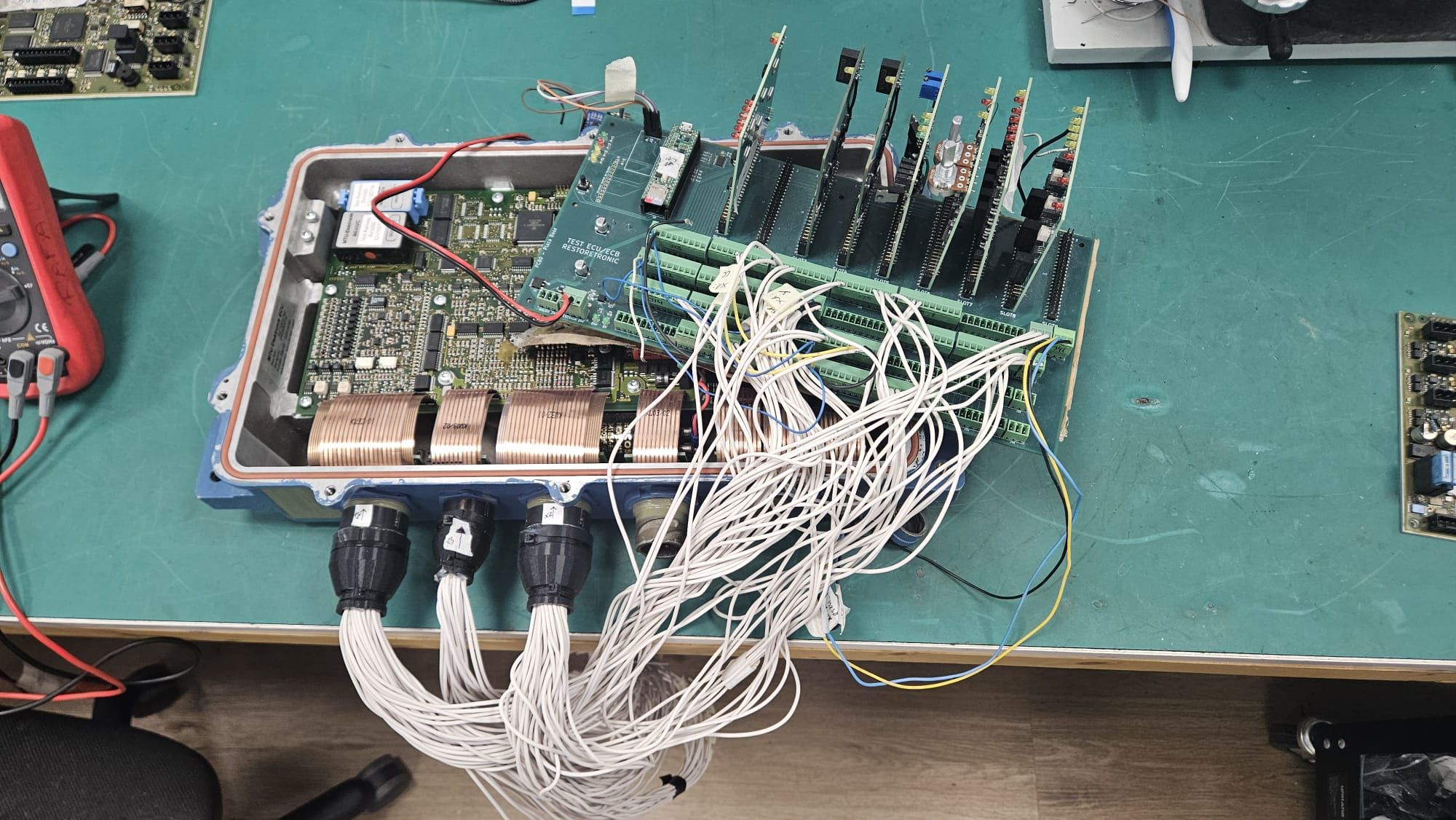 As this unit became obsolete, in 2024 we noticed an increase of repairs on these MDEC units, so we decided to improve our possibilities to repair them, going deeper in the simulation. We designed and developed this prototype to be able to connect on the ECU, not only on this model, it will be available for other models of MTU ECU´s. We are on last stage to finish it, now working on the software side. Each board connected on motherboard would be prepared to simulate different channels, sensors or conditions. The idea is that each of our engineers will have this unit on the bench to work on ECU repairs.